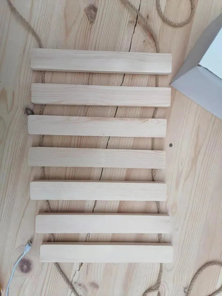 • Matériaux de qualité supérieure : Bois naturel robuste et durable, avec des cordes solides pour une fixation sécurisée.
