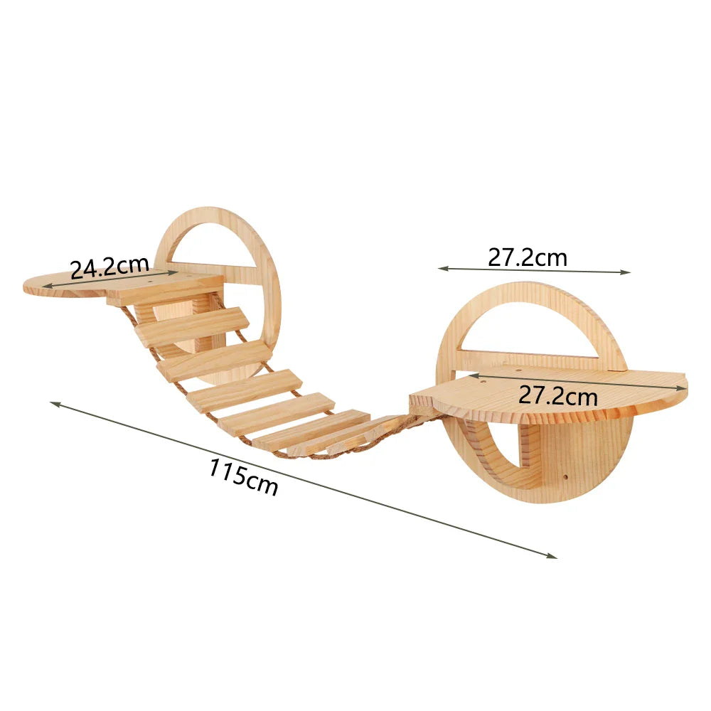 • Conception : Arbre à chat mural avec ponts suspendus, plateformes, nids, cabanes et hamac mural